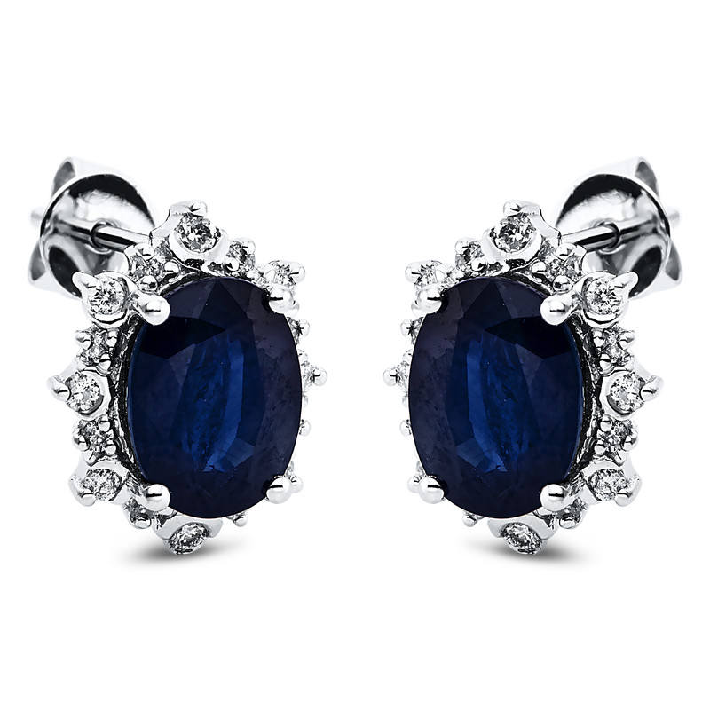 earrings 14 kt WG, 32 diamonds 0,24 ct, G-si, 2 sapphire 3,76 ct blue