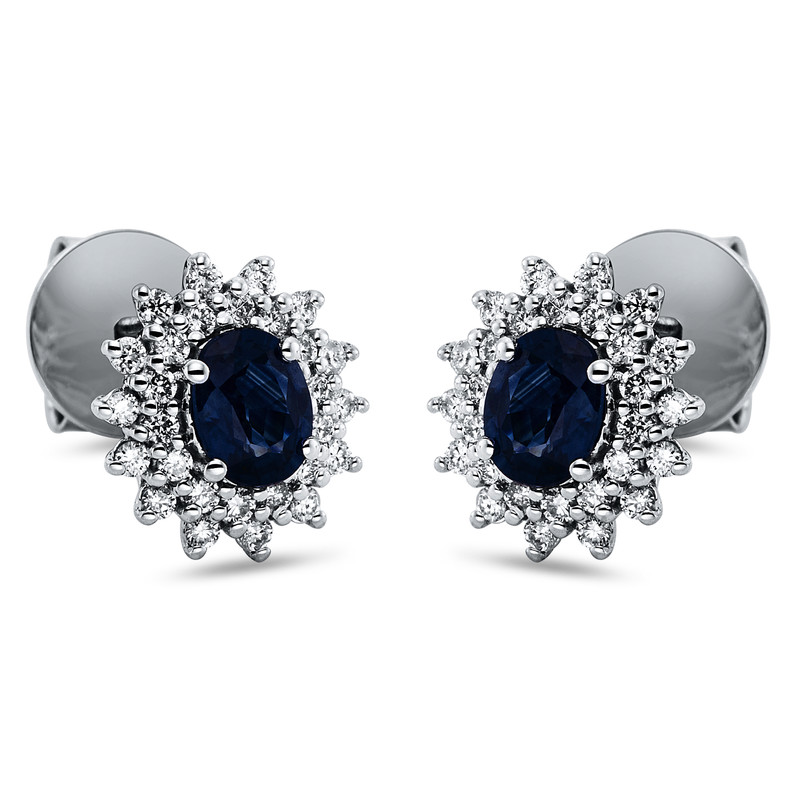 earrings 14 kt WG, 56 diamonds 0,41 ct, G-si, 2 sapphire 0,96 ct blue