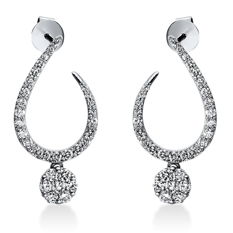 earrings 14 kt WG, 12 diamonds 0,37 ct, G-vsi, 48 diamonds 0,57 ct, G-vsi, 2 diamonds 0,08 ct, G-vsi