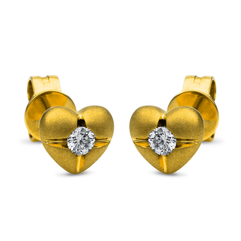 earrings 14 kt YG "heart", matt finsihed, 2 diamonds 0,10 ct, G-si, h:5,4 mm, w:6,4 mm