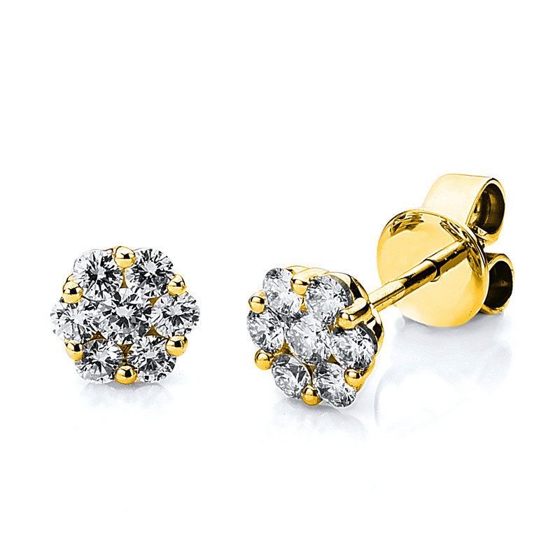 earrings 14 kt YG, 14 diamonds 0,52 ct, G-si