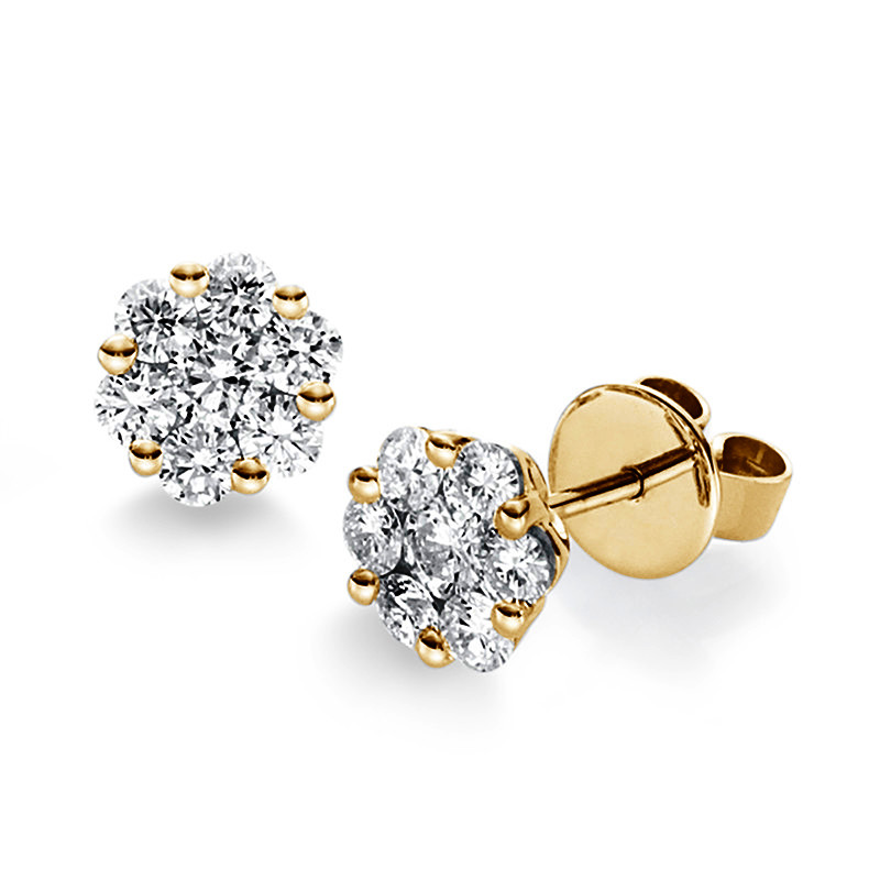 earrings 14 kt YG, 2 diamonds 0,28 ct, G-si, 12 diamonds 0,75 ct, G-si, w:7,9 mm