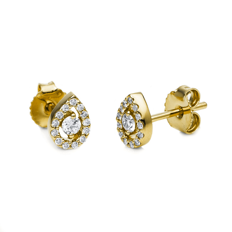 earrings 14 kt YG, 28 diamonds 0,20 ct, G-si, h:6,9 mm, w:5,1 mm