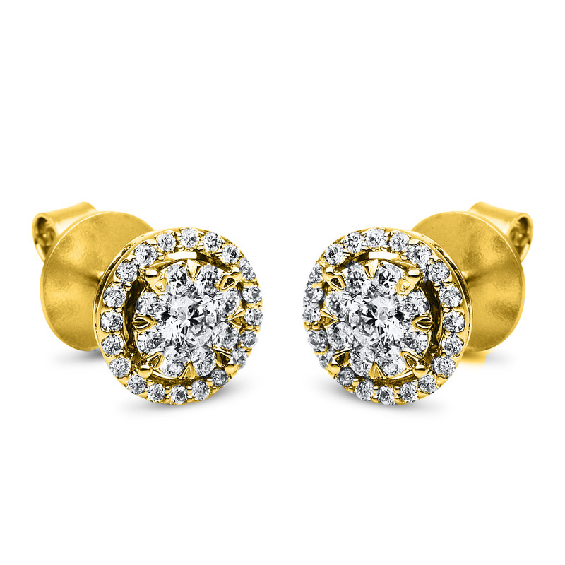 earrings 14 kt YG, 2 diamonds 0,16 ct, G-si, 48 diamonds 0,44 ct, G-si, Ø:8,3 mm
