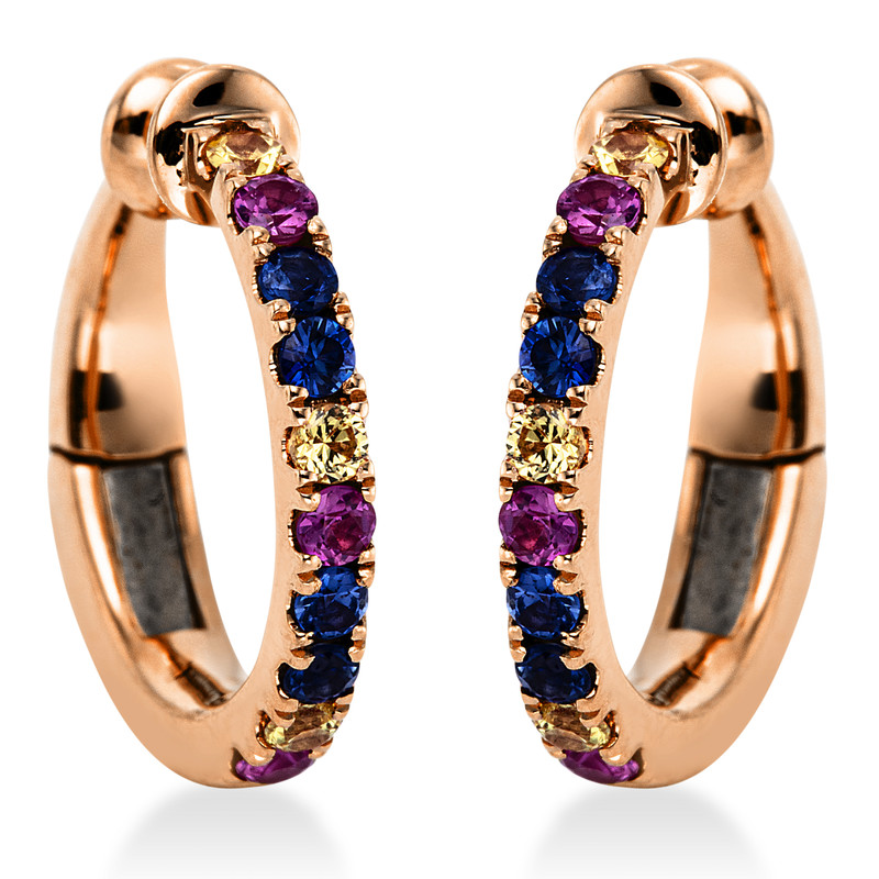 earrings 18 kt RG, cuff earring, 10 sapphire 0,18 ct multicolor