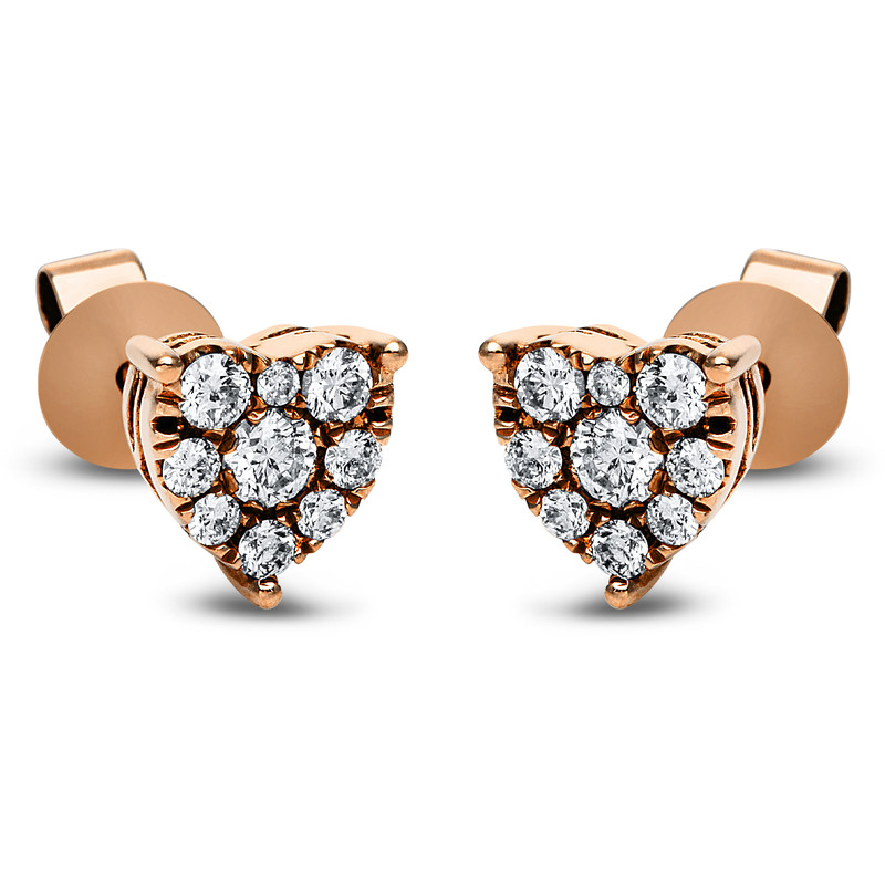 earrings 18 kt RG "heart", 6 diamonds 0,24 ct, G-si, 12 diamonds 0,14 ct, G-si