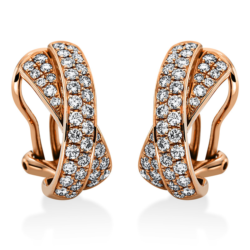 earrings 18 kt RG, 78 diamonds 1,05 ct, G-vsi, h:16,8 mm, w:7,3 mm