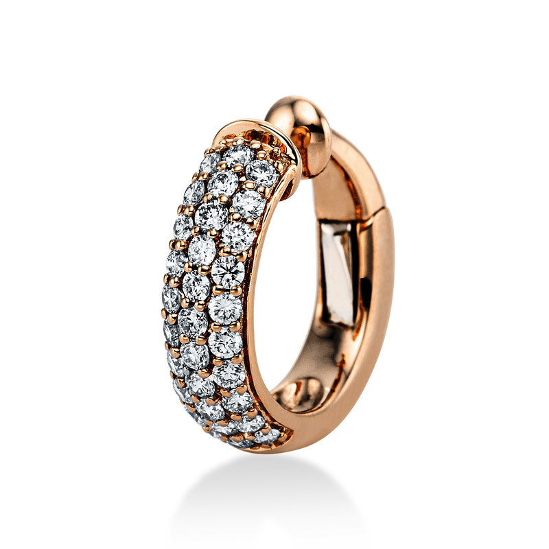 earrings 18 kt RG, 31 diamonds 0,29 ct, G-si, h:14,3 mm, w:14,6 mm, th:3,9 mm