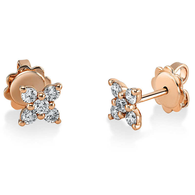 earrings 18 kt RG, 10 diamonds 0,50 ct, G-si, h:6,2 mm, w:6,1 mm