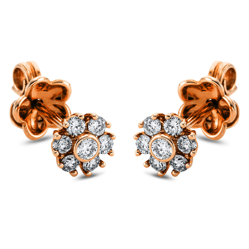 earrings 18 kt RG, 14 diamonds 0,32 ct, G-vsi