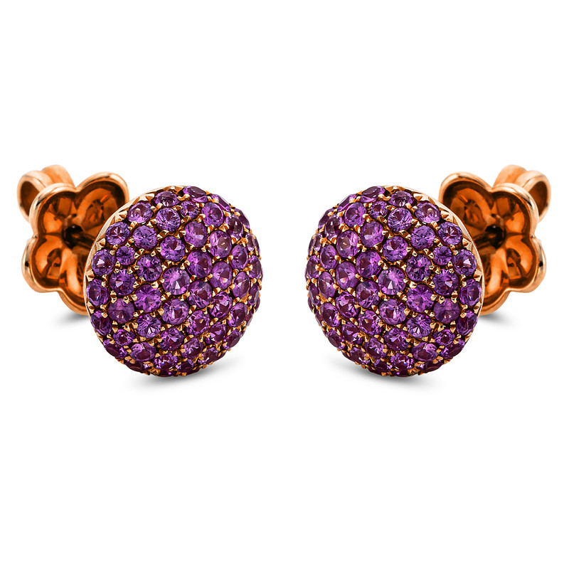 earrings 18 kt RG, 110 sapphire 1,44 ct pink, Ø:9,9 mm