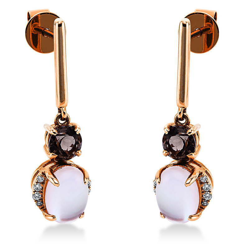 earrings 18 kt RG, 16 diamonds 0,06 ct, G-pi, 2 smo.quartz 0,47 ct, 2 MOP 1,70 ct milky