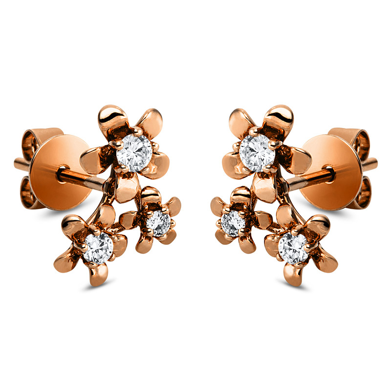 earrings 18 kt RG, 6 diamonds 0,19 ct, G-si