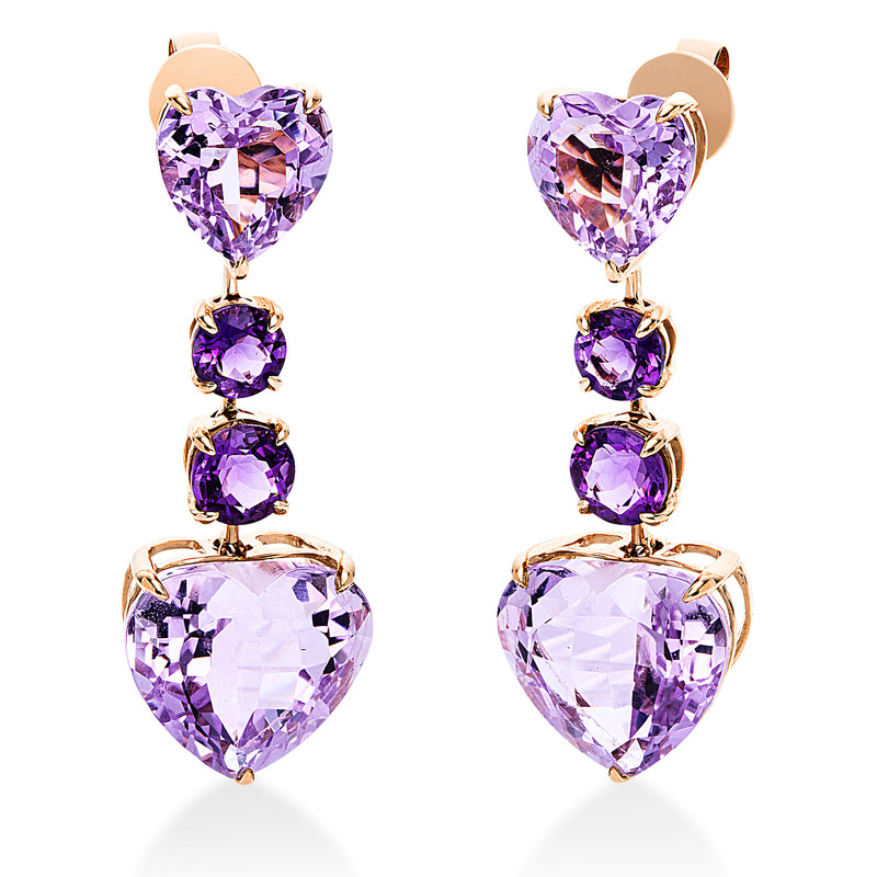 earrings 18 kt RG, 2 amethysts 5,10 ct pink, 4 amethysts 2,50 ct, 2 amethysts 14,20 ct pink, h:36,8 mm, w:13,1 mm