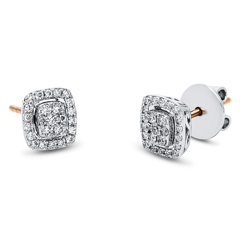 earrings 18 kt RG+WG, 50 diamonds 0,32 ct, G-si, h:7,8 mm, w:7,2 mm
