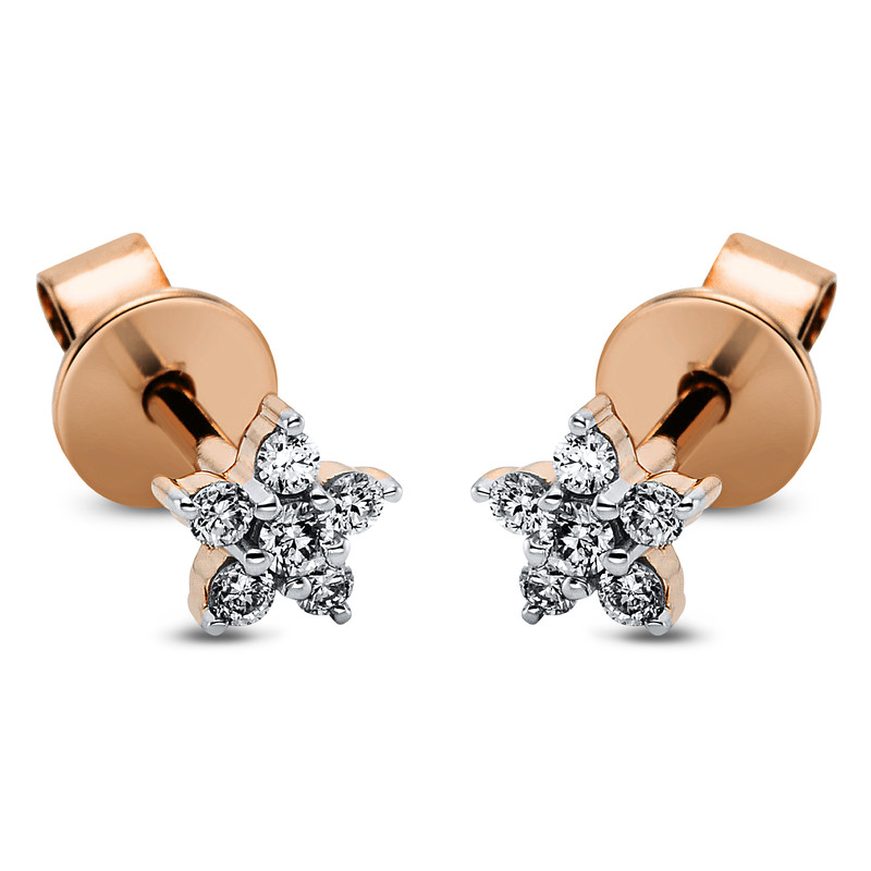 earrings 18 kt RG+WG, 12 diamonds 0,15 ct, G-si, h:5,1 mm