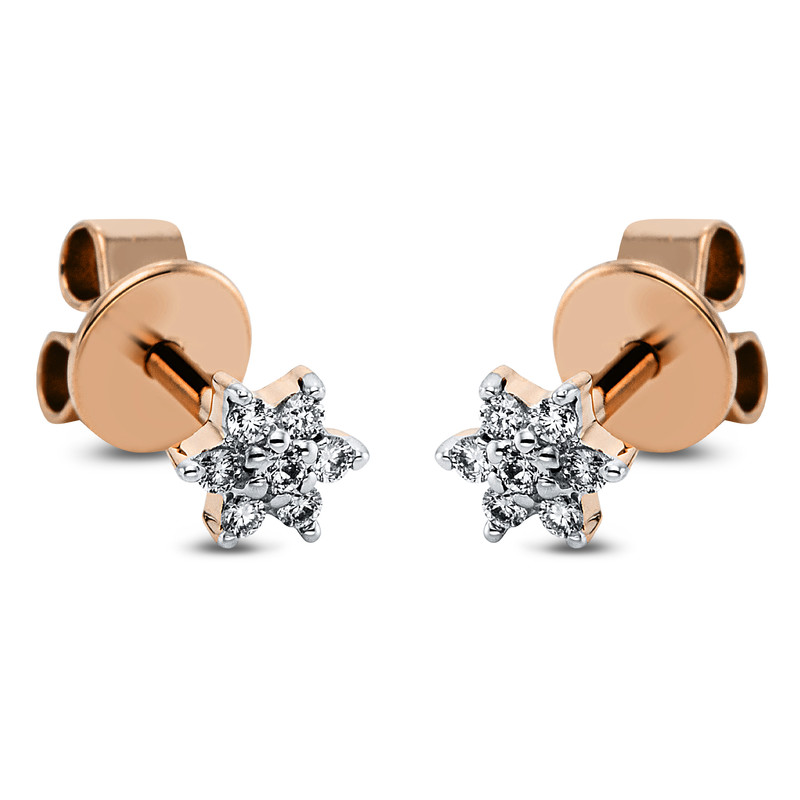 earrings 18 kt RG+WG, 14 diamonds 0,10 ct, G-si, h:4,7 mm