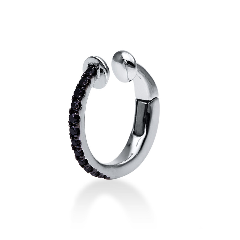 earrings 18 kt WG, cuff earring, partly black rho