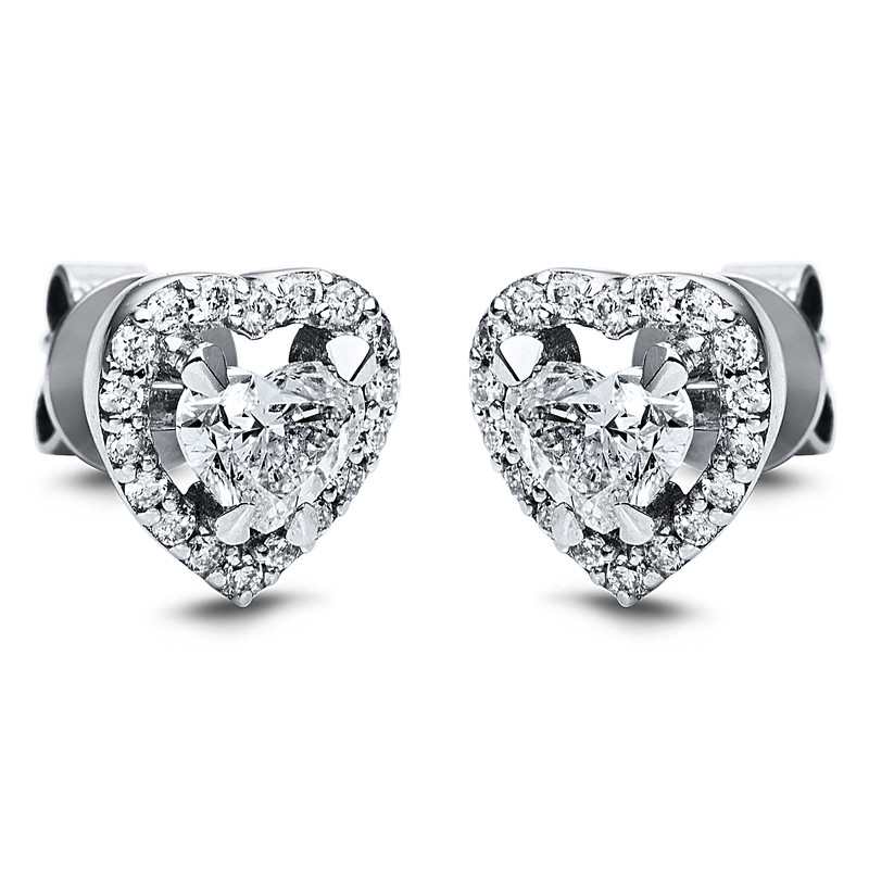 earrings 18 kt WG "heart", 2 heartshape 0,78 ct, G-si, 36 diamonds 0,21 ct, G-si, h:8,4 mm, w:8,2 mm
