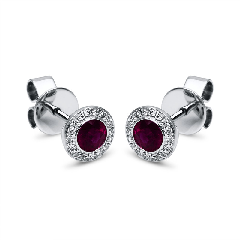 earrings 18 kt WG, 36 diamonds 0,11 ct, G-vsi, 2 rubies 0,62 ct red