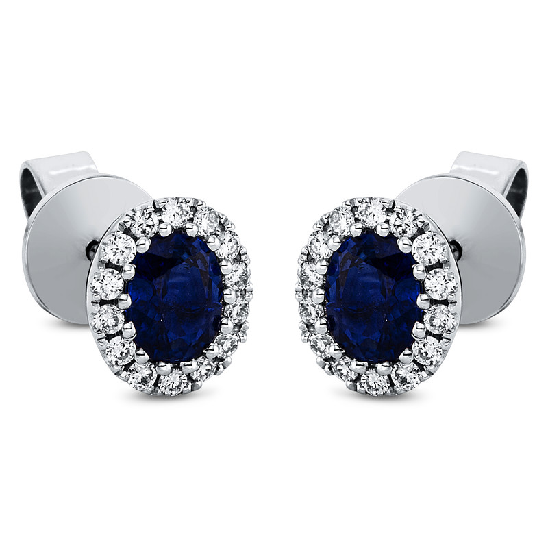 earrings 18 kt WG, 28 diamonds 0,19 ct, G-si, 2 sapphire 0,83 ct blue