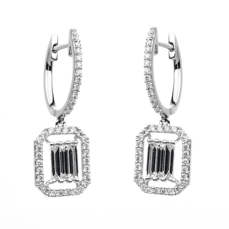 earrings 18 kt WG, 6 tapers 0,37 ct, G-si, 78 diamonds 0,29 ct, G-si