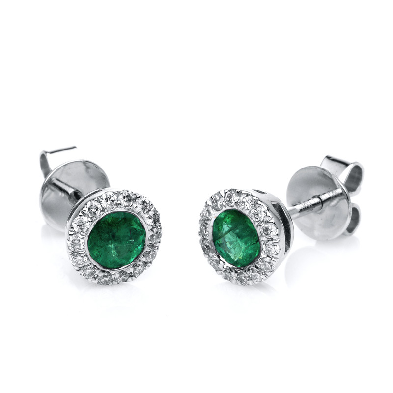 earrings 18 kt WG, 28 diamonds 0,15 ct, G-si, 2 emeralds 0,50 ct green, h:6,4 mm, w:6,4 mm