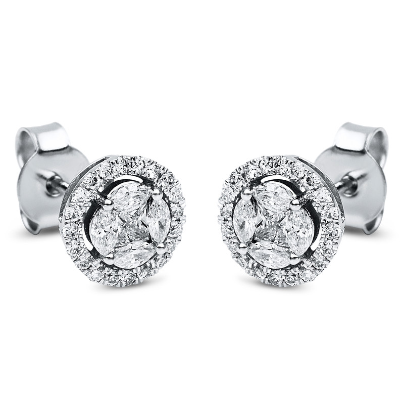 earrings 18 kt WG, 40 diamonds 0,19 ct, G-si, 2 princess 0,17 ct, G-si, 8 marquise 0,22 ct, G-si
