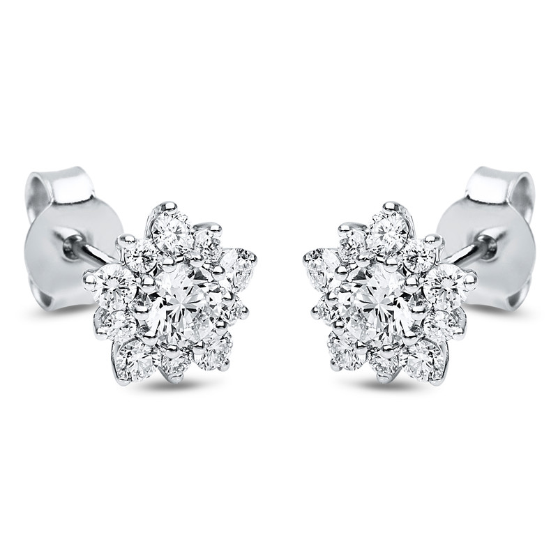 earrings 18 kt WG, 2 diamonds 0,49 ct, G-si, 20 diamonds 0,55 ct, G-si