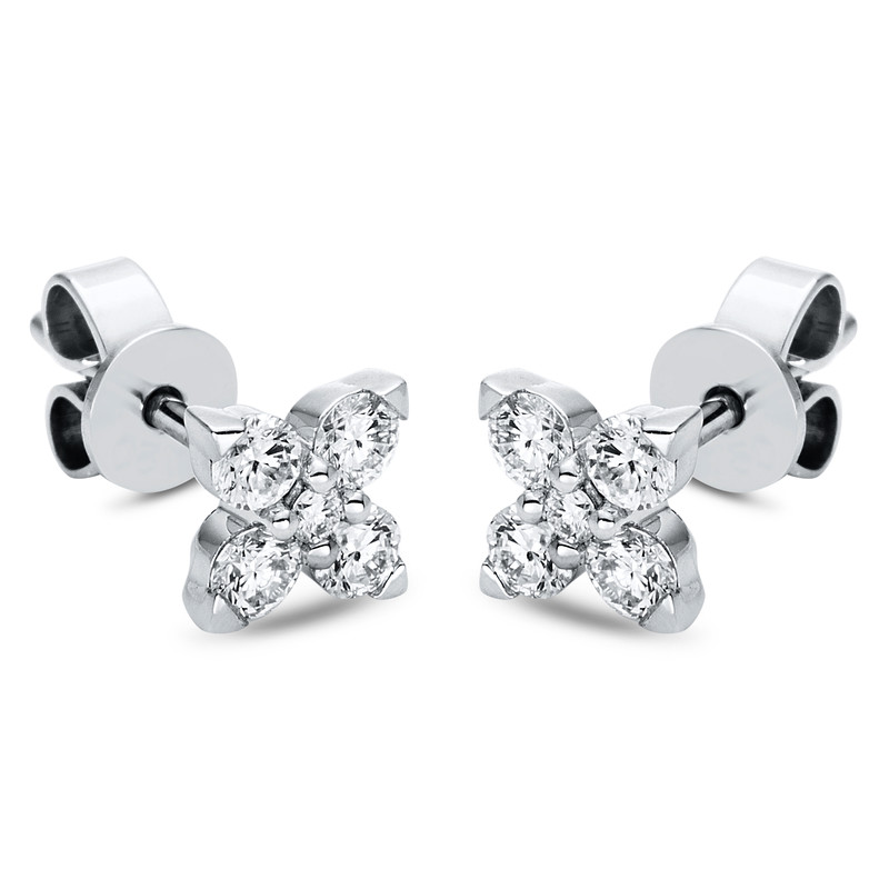 earrings 18 kt WG, 2 diamonds 0,02 ct, G-si, 8 diamonds 0,32 ct, G-si, h:7,1 mm, w:7,1 mm