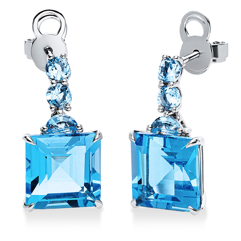 earrings 18 kt WG, 2 topaz 0,30 ct blue, 2 topaz 10,70 ct blue, 4 topaz 0,60 ct blue, h:18,8 mm, w:9,6 mm