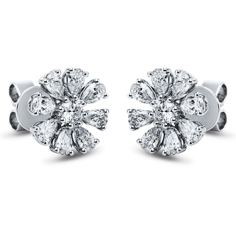 earrings 18 kt WG, 16 pear 1,22 ct, G-vsi, 2 diamonds 0,24 ct, G-vsi