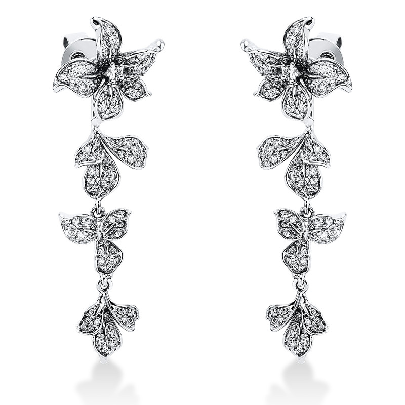 earrings 18 kt WG, 156 diamonds 0,67 ct, G-si