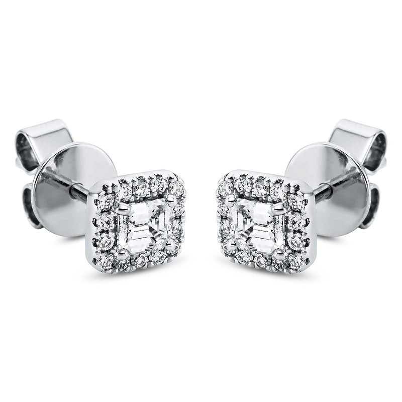 earrings 18 kt WG, 2 em.cut 0,46 ct, G-vsi, 28 diamonds 0,16 ct, G-vsi, h:6,5 mm, w:6,0 mm