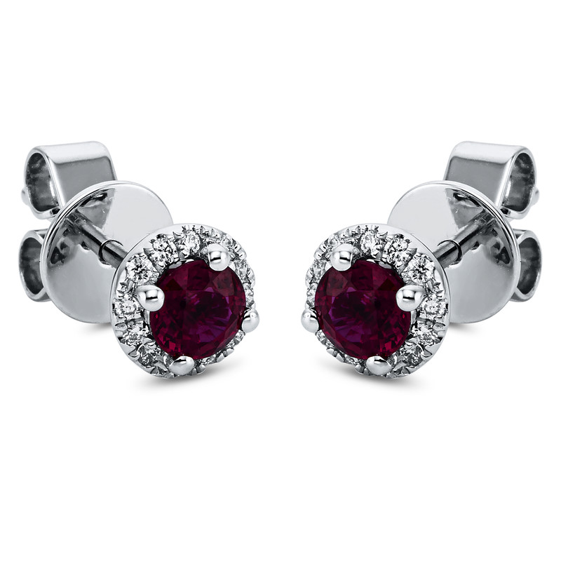 earrings 18 kt WG, 24 diamonds 0,11 ct, G-vsi, 2 rubies 0,78 ct red, Ø:6,1 mm