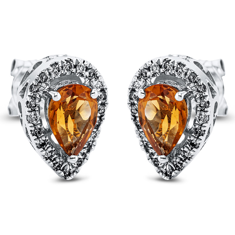 earrings 18 kt WG, 40 diamonds 0,14 ct, I-si, 2 citrine 0,74 ct orange