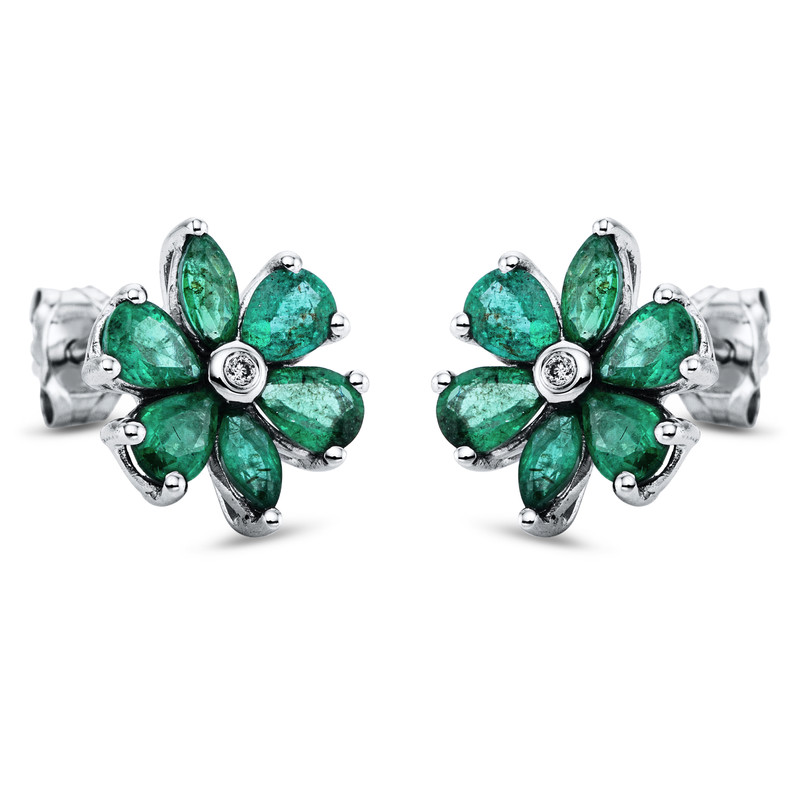 earrings 18 kt WG, 2 diamonds 0,01 ct, I-si, 12 emeralds 1,23 ct green