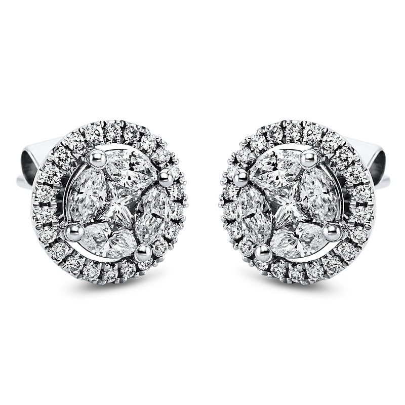 earrings 18 kt WG, 8 marquise 0,53 ct, G-si, 2 princess 0,16 ct, G-si, 44 diamonds 0,23 ct, G-si