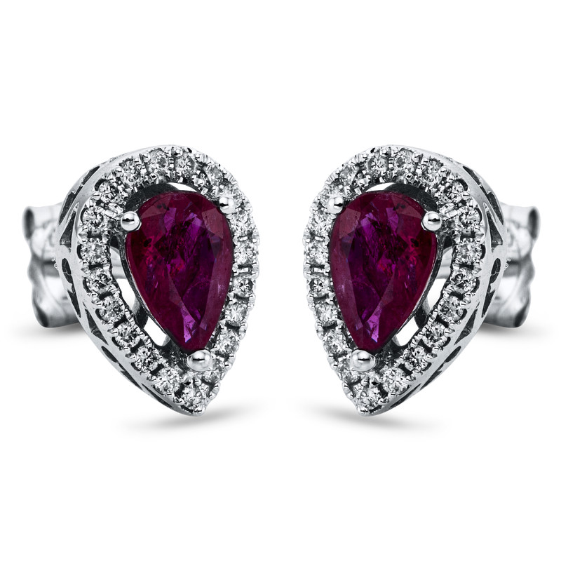 earrings 18 kt WG, 40 diamonds 0,15 ct, I-si, 2 rubies 0,80 ct red, h:10,0 mm, w:7,2 mm