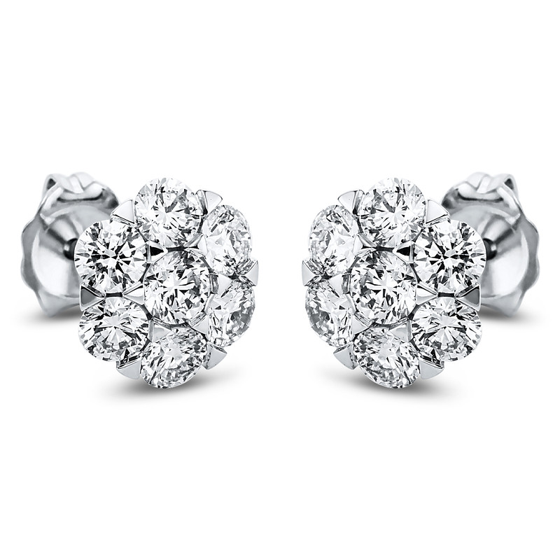 earrings 18 kt WG, 14 diamonds 1,44 ct, G-si, Ø:8,4 mm