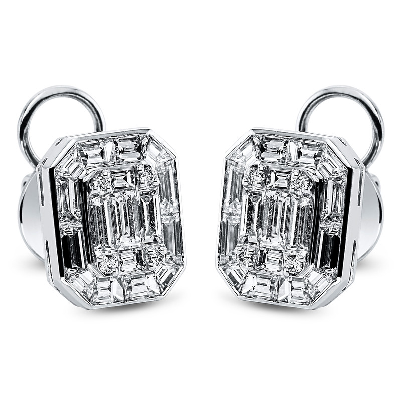 earrings 18 kt WG, 34 baguette 3,28 ct, G-vsi/si, 8 diamonds 0,08 ct, G-vsi