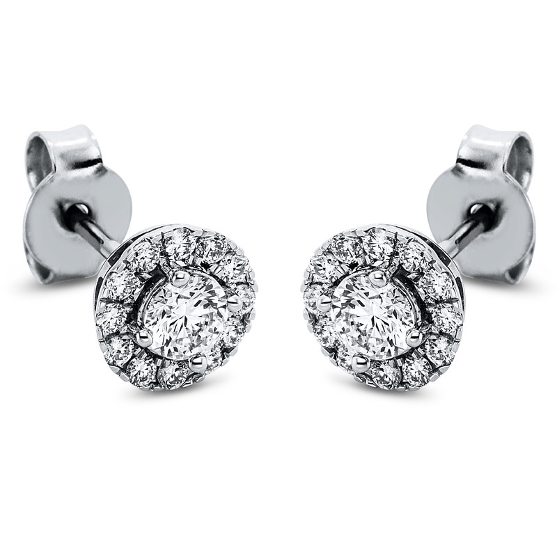 earrings 18 kt WG, 2 diamonds 0,48 ct, G-si, 24 diamonds 0,28 ct, G-si