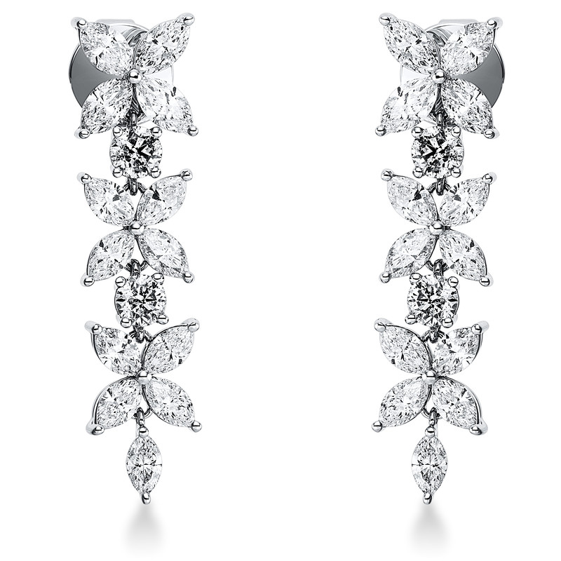 earrings 18 kt WG, 26 marquise 3,96 ct, G-si, 4 diamonds 0,96 ct, G-si