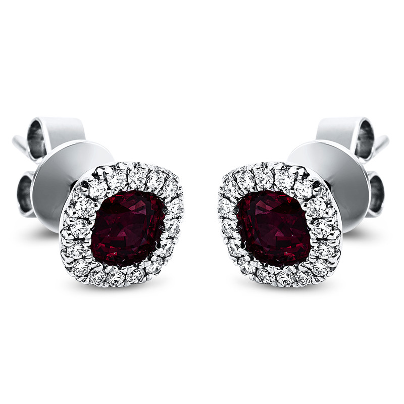 earrings 18 kt WG, 36 diamonds 0,24 ct, G-vsi, 2 rubies 1,43 ct red