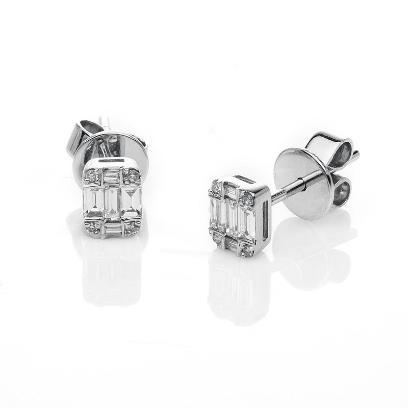 earrings 18 kt WG, 8 diamonds 0,04 ct, G-si, 10 baguette 0,25 ct, G-si, h:5,5 mm, w:4,1 mm