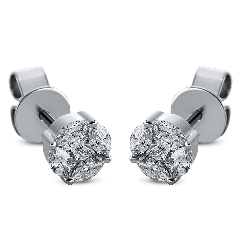 earrings 18 kt WG, 2 princess 0,21 ct, G-si, 8 marquise 0,43 ct, G-si, w:5,8 mm, th:2,8 mm