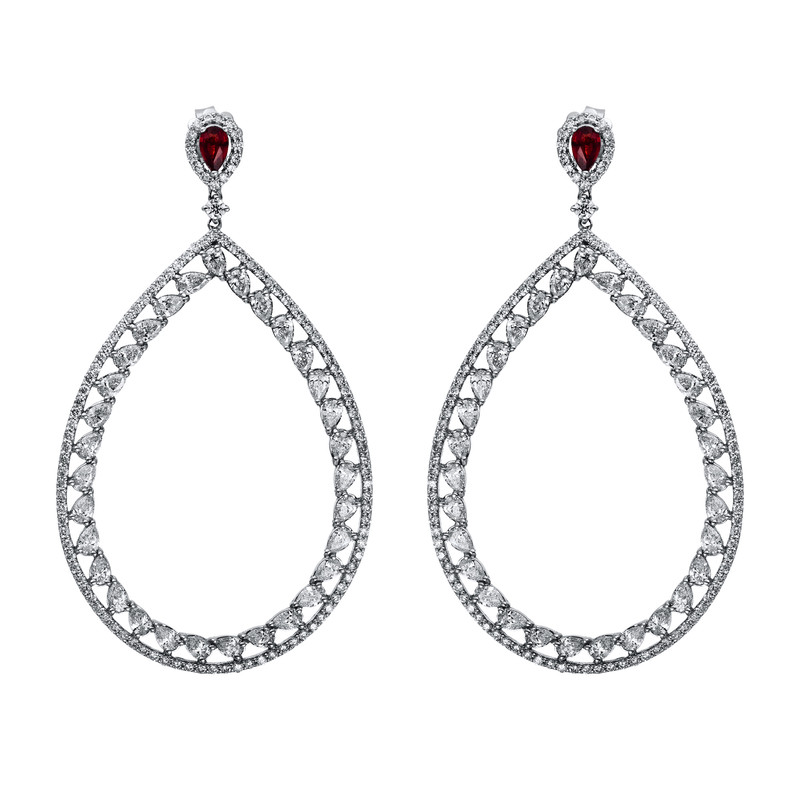earrings 18 kt WG, 62 pear 3,80 ct, G-si, 220 diamonds 1,81 ct, G-si, 2 sapphire 0,59 ct orange