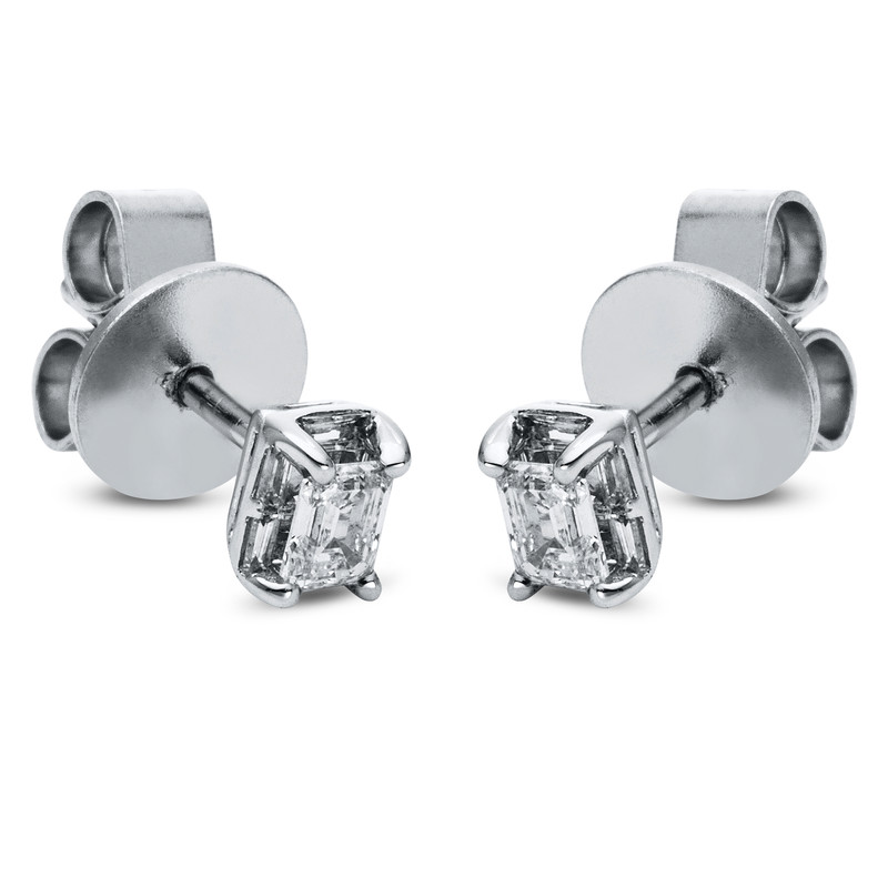 earrings 18 kt WG, 6 baguette 0,10 ct, G-si, 2 em.cut 0,31 ct, G-si, h:4,8 mm, w:3,9 mm