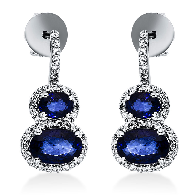 earrings 18 kt WG, 68 diamonds 0,25 ct, G-vsi, 4 sapphire 1,61 ct blue