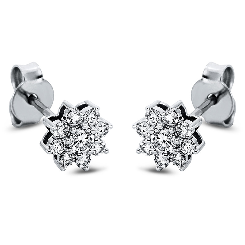 earrings 18 kt WG, 2 diamonds 0,19 ct, G-si, 16 diamonds 0,40 ct, G-si